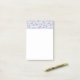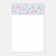Sticky notes with a pattern with a fun summery vibe. Pink flamingos and pineapples set on a light blue striped pattern with leaves and hearts all around.