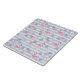 Ceramic tile with a pattern with a fun summery vibe. Pink flamingos and pineapples set on a light blue striped pattern with leaves and hearts all around.