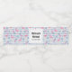 Event water bottle labels with a pattern with a fun summery vibe. Pink flamingos and pineapples set on a light blue striped pattern with leaves and hearts all around.