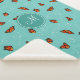 This cute butterfly pattern sherpa fleece blanket features Monarch butterflies with their characteristic orange, gold, black and white markings & bouncy, twirly flight trails as they float through the air - background is customisable light teal, and monogram can be personalised on a coordinating circle pendant - by katz_d_zynes
