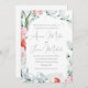 This whimsical floral wedding invitation features colourful watercolor blooms and elegant calligraphy script on a white background. Beautiful soft peach, ivory white, and pink flowers, with subtle green leaves add a soft beauty to this romantic design. Shop this store for coordinating items and additional colour options.