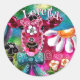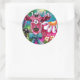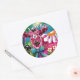 Whimsical Floral Cow Pink Teal Black Personalised Classic Round Sticker