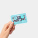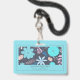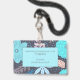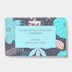 A whimsical hand drawn boho folk art style floral pattern badge with leaves and speckled greenery in lush turquoise and pink colours on a turquoise background. Add your name and title. Great for wellness fairs or events.