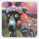 Whimsical Floral Goat Farm Animal Floral Peach Square Sticker