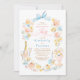 The whimsical layout is rich with bespoke illustrations, including chilled champagne, a celebratory tiered cake, and a vintage-style Rococo flower vase. These artistic details evoke the sophisticated atmosphere of an intimate garden party or a chic coastal gathering.