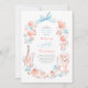Blue Bow & Pink Florals Rehearsal Dinner Invitation. Set a charming and sophisticated tone for your pre-wedding celebration with this whimsical Rehearsal Dinner invitation. Designed for the modern bride who loves a "new traditionalist" aesthetic, this invitation features a quirky, hand-painted watercolor floral wreath adorned with a signature light blue coquette bow. The artistic layout includes bespoke illustrations of champagne, a tiered cake, rococo flowers vase, and glowing candles, evoking the feeling of an intimate garden party chic soirée. Elegant, flourished calligraphy is paired with clean typography to ensure your event details are both beautiful and easy to read. Whether you are hosting a formal dinner or a relaxed coastal gathering, this airy and feminine design is the perfect introduction to your wedding weekend.