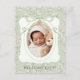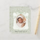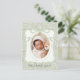 Whimsical green ribbon with green and white sweet floral background to form a vintage design for this lovely baby birth announcement. Vintage rustic frame with whimsical ribbons flowing down over baby photo. Sage green. 100% customer satisfaction at Zazzle every day.