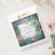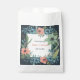 A beautiful wedding favour bags that has the design of a floral frame with leaves against a dark background, in the style of dark aquamarine, textured illustrations, watercolor and vibrant colours of cool blue, salmon and greens. Personalise for your guests!