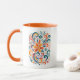 Whimsical Floral Swirl Mug - Orange Accent Handle