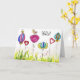 Whimsical Flowers and a Bird Greeting Card
