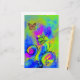 Vibrant ,elegant and artistic design. A colourful sparkling butterfly with a magic flower,stylised blossoms and blooms .Watercolor painting with gold and silver foil in green yellow pink fuchsia ,purple,blue colours..Beautiful design for Christmas, special occasions ,Mother's Day, birthdays,wedding,and Valentine's Day .