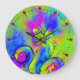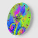 WHIMSICAL FLOWERS pink yellow green blue Large Clock