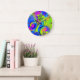 WHIMSICAL FLOWERS pink yellow green blue Large Clock