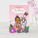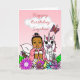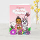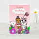 A pretty African-American, Hispanic, Hawaiian, Latino girl fairy and whimsical folk arr flowers and butterflies card for a little girl. personalise it by adding the child's name in the customise area. Coral, Pink, purple, yellow, teal, and all different beautiful bright happy colours.