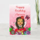 A pretty African-American, Hispanic, Hawaiian, Latino girl fairy and whimsical folk arr flowers and butterflies card for a little girl. personalise it by adding the child's name in the customise area. Pink, purple, yellow, teal, and all different beautiful bright happy colours.