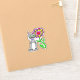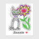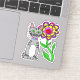 Whimsical Folk Art Cat and Colourful Flower Sticker .