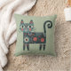 Whimsical Folk Art Retro Boho Cat Sage Cushion