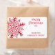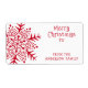 Winter holiday to from gift label featuring a red, whimsical, folk art style snowflake and customisable text "A very merry Christmas to", a blank space to hand write a name on, and your name on a white background.