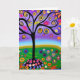 Blank card.. Colourful whimsical artwork. Tree in yellow, white, blue and purple flowers and leaves. AI generated art. genertativecontent