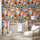 Whimsical Folk Art Watercolor Flowers and Cats Wallpaper
