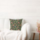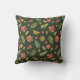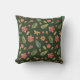Whimsical throw pillow features watercolor flowers and leaves pattern on forest green background