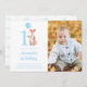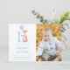 Whimsical Fox & Balloon Blue 1st Birthday Photo Invitation