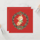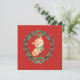 Festive holiday design features whimsical fox and holly wreath on red background. Customise with name or special message on back