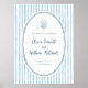 A whimsical welcome sign to match our Whimsical Retro Blue Stripes Wedding collection. This design features a navy blue hand-drawn frame against a light blue striped background and a doodle scribble illustration of a diamond ring in a seashell ring box. The details follow with the couple's names in charming script lettering. Ideal for summer, Italian, beach, yacht, and coastal wedding themes. This is a poster version of the design. There is a foam board version available in the collection. View the collection linked on this page for matching items. Feel free to message me with any questions, I'll be happy to help!