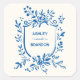 Whimsical French Blue Botanical Crest Wedding Square Sticker