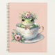 A charming green frog peeks out of a delicate porcelain teacup adorned with soft pink blossoms and gold trim, crowned with a wreath of pastel florals and a tiny royal crown. This endearing scene blends fairytale whimsy with cottagecore elegance, evoking gentle nostalgia and playful storybook vibes. Rendered in a dreamy watercolor style, this sweet composition captures the magic of tea parties and nature’s smallest royalty. Ideal for lovers of frogs, florals, and vintage flair. AI generated artwork.