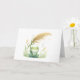 This charming blank greeting card features an adorable light green frog gently holding a tall, feathery reed that resembles pampas grass, all rendered in a soft, whimsical watercolor style. With delicate pollen drifting through the air with fluttering dragonflies and dreamy natural tones, this design brings a peaceful, enchanted vibe to any occasion. Perfect for nature lovers, frog fans, or anyone who appreciates gentle woodland whimsy. Ideal as a thinking-of-you card, thank you note, or just a sweet hello.