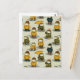 This charming seamless pattern features an array of adorable cartoon frogs, each dressed in vibrant yellow raincoats, cozy hats, and boots, navigating a puddle-filled landscape. With one frog even holding a tiny umbrella, this playful illustration captures the cheerful spirit of a rainy day.