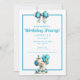 This charming birthday invitation features a delightful blend of whimsical designs and a refreshing teal color palette. Perfect for making any child's birthday celebration extra special!
