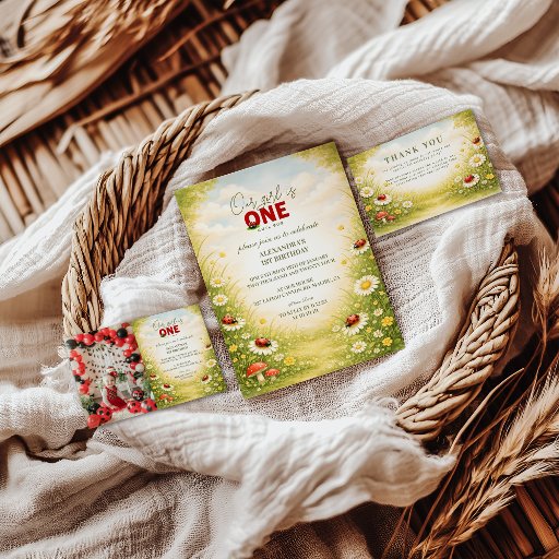Whimsical Garden Lady Bug 1st Birthday Invitation