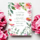 Whimsical Garden Pink Flowers Green Bridal Shower Invitation