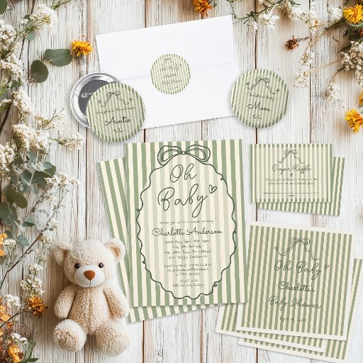 Welcome your sweet one with this sage gender neutral baby shower labels. Designed with sage green stripes and a whimsical hand drawn bow, this modern, simple, and minimal design features a playful “oh baby” phrase in a hand written script. Perfect for a boy or girl baby shower, this cute and understated sticker is ideal for a spring summer baby shower, offering a fresh, timeless look that’s easy to personalize. Please contact me if you have any special request for custom products.