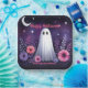 Whimsical Ghost and Floral Spooky Pink Purple Paper Plate