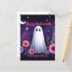 Whimsical Ghost and Floral Spooky Pink Purple Postcard