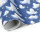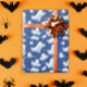 This wrapping paper has a whimsical design with lots of little white playful Halloween ghosts on blue starry night watercolor background.