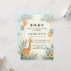 Celebrate your little one with this delicate, whimsical baby shower invitation. Featuring a charming cartoon giraffe, soft watercolor clouds, balloons, and muted floral accents, the pastel palette of grey-blue, muted orange, and green creates a warm, inviting vibe. Perfect for announcing a dinner & cocktails celebration, this elegant vertical design brings joy and charm to your special event.