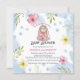 © Socialite Designs & LICENCORS. Whimsical baby shower invitation with a charming watercolor girl bunny rabbit and floral frame. A wonderful invitation for the birth of a baby girl.