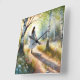 This enchanting artwork captures a dreamy woodland scene where a young girl in a flowing, vintage-style dress dances down a sun-dappled forest path. Surrounded by soft birch trees, delicate foxgloves, and glowing wildflowers, the mood is pure cottagecore—peaceful, nostalgic, and full of wonder. Gentle pastel tones of lavender, sage, and blush pink mingle with golden sunlight and deep forest greens to create a whimsical, storybook-like atmosphere. The watercolor style adds an ethereal softness, as if the whole scene were lifted from a fairytale memory. It's a timeless blend of nature, femininity, and quiet magic. AI generated artwork.