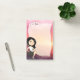 Elegant whimsical post it notes featuring a cartoon girl in a fantasy landscape at sunset.