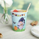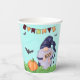 Playful Halloween party cup featuring a whimsical gnome holding a “Boo!” sign with pumpkins, bats, and festive bunting. Perfect for adding a charming touch to your spooky celebrations, trick or treat events, or kids’ Halloween parties.