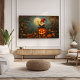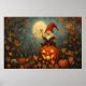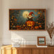 This whimsical fall art features a gnome sitting on a glowing jack-o'-lantern under the full moon. Surrounded by golden autumn leaves, this charming artwork brings a cosy, seasonal vibe to any room. Perfect for fall decor lovers, it adds a touch of enchantment to your home or office. Available in various products, it makes a great gift for Halloween or Thanksgiving!