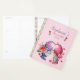 This adorable planner features a pink with white polka dots background and a boy and girl gnome couple on the front. He's dressed in purple and holding flowers behind his back for his love. She's dressed in pink and holding a heart behind her back. It's personalised at the top with your name, the word PLANNER and the YEAR. Back side has the same background and has the word LOVE with gnomes peaking out from it.