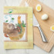 Whimsical kitchen towel features illustrated goat with christmas banner on neck. Christmas farm illustration is frame with holiday holly. Perfect for any country kitchen. Farm animal portrait by judithchengart