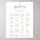 This whimsical gold alphabetical wedding seating chart poster is perfect for a modern wedding. This sign can be used to organise your guests alphabetically or by table number. The design features elegant yet rustic golden typography for a simple minimal look. This wedding poster includes enough room for up to about 100 guests. Make room for more (or less) guests by clicking the "customise" button and decrease or increase the size of the font. In addition to the placement of each guest, personalise this sign with the names of the bride and groom and the wedding date.