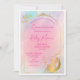 A Whimsical Gold Fairy Pixie on a Pink and Pastel Colour background with Magical Butterfly accents Quinceanera Invitation
