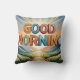 The pillow has a cute whimsical design on one side featuring a beautiful sunrise and the words "Good Morning", and on the backside a dark evening sky with stars and moon, with the words, "Good Night". Looks great anywhere, especially the kids rooms.
